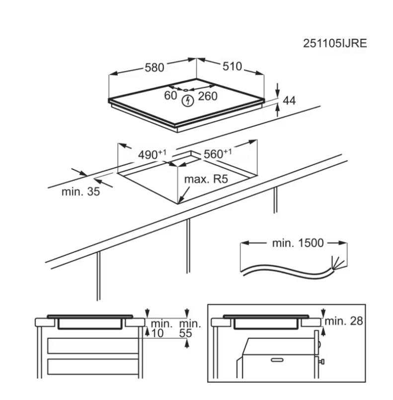 - Pravá přední zóna - výkon/průměr: 1400/2500W/145mm