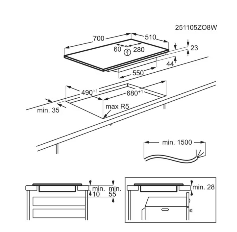 - Levá přední zóna - výkon/průměr: 2300/3200W/220mm