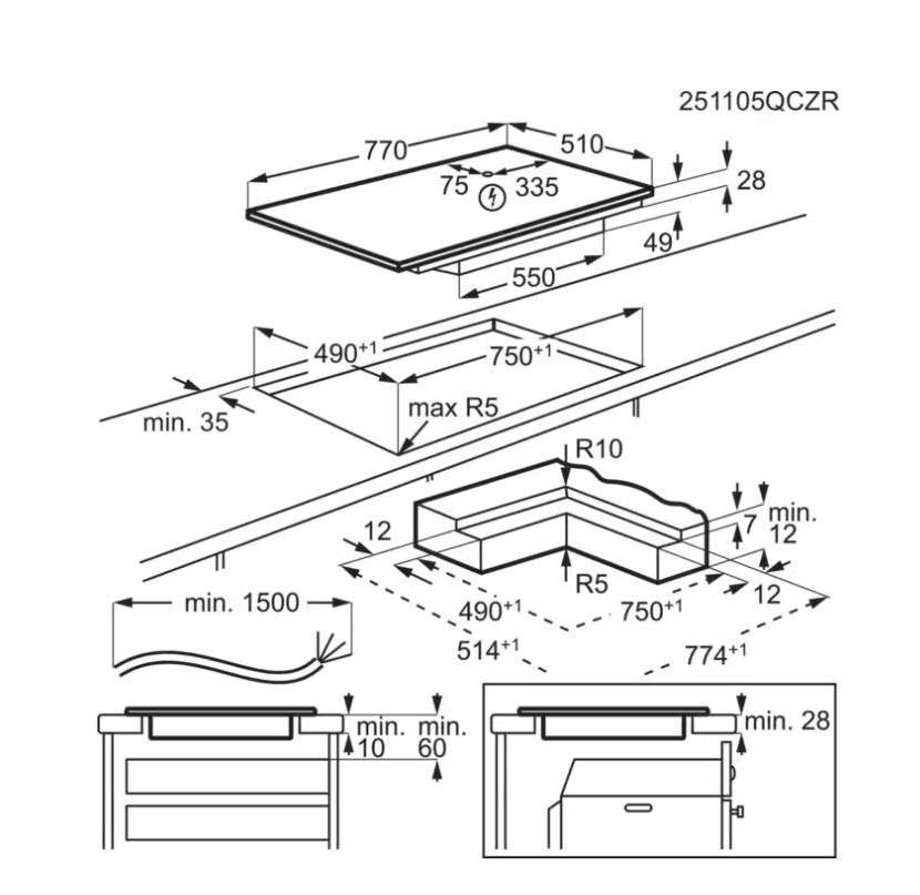 - Radius výřezu (mm): 5/10 integrovaný