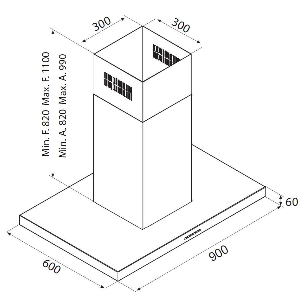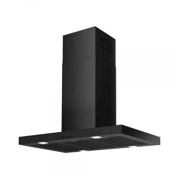 Ostrůvková digestoř nadčasového tvaru obráceného písmene T vybavená výkonným motorem s nízkou spotřebou elektrické energie. Ventilační jednotku digestoře je možné pomocí sady EVJ AF2 přemístit mimo kuchyni a docílit tak téměř bezhlučného provozu. Tělo odsavače par je vyrobeno z černě stříkané oceli. Tvar digestoře nabízí možnost využití horní části jako odkládacího prostoru. Digestoř je vybavena kovovými kazetovými tukovými filtry, které není třeba měnit a lze je jednoduše umýt v myčce nádobí. Jednoduché tlačítkové ovládání odsavače par je nenáročné na obsluhu a disponuje 4 rychlostmi. Osvětlení digestoře je zajištěno LED diodovými žárovkami se světelným spektrem podobným dennímu světlu. LED osvětlení kombinuje vysoký výkon s nízkou spotřebou energie. Odsavač je standardně dodáván v odtahové verzi, součástí základní výbavy digestoře je teleskopický komín a zpětná klapka, v případě recirkulačního provozu je nutné k digestoři dokoupit uhlíkový filtr. Záruka na funkční díly 5 let.