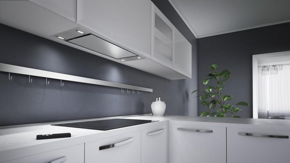 Vestavná digestoř v přímých, čistých liniích vybavená výkonným motorem s nízkou spotřebou elektrické energie.