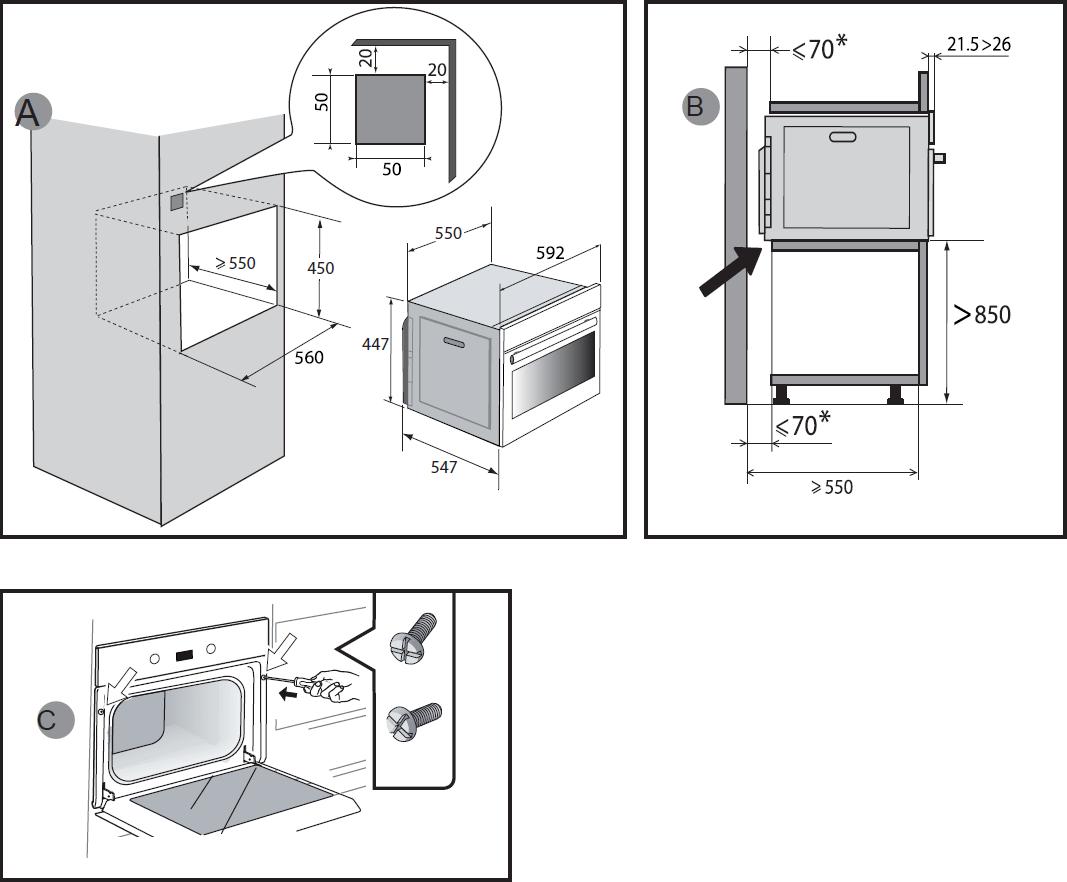 Rozměry otvoru pro vestavbu (V x Š x H): 45 x 56 x 55