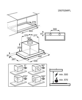 - Typ odsavače: Pro individuálně vytvořený komín, šířka 54 cm