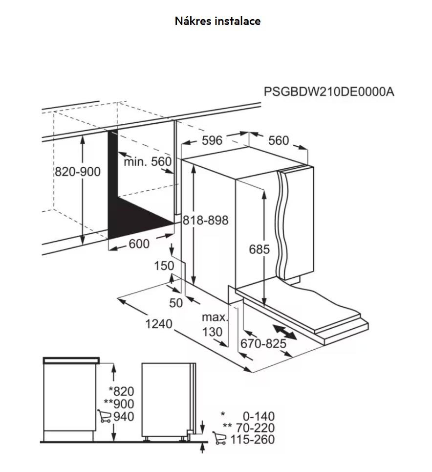 - Prostor pro instalaci VxŠxH (mm): 820-900x600x560