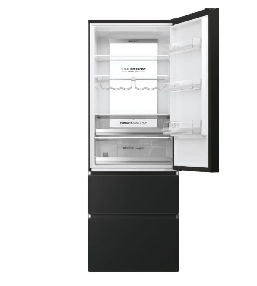 Volně stojící, Třídveřová, No Frost, Světla LED, Třída E, Slate black, S x H x V (mm) 700x675x2006