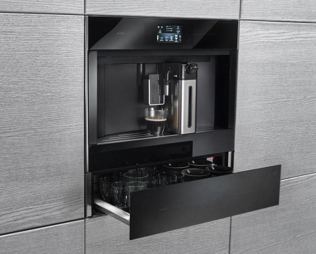Vestavný kávovar ASKO Elements v elegantním černém skle nabízí nejen stylový design, ale i intuitivní ovládání díky barevnému dotykovému displeji. Součástí je termo nádoba na mléko a pokročilý systém pro tvorbu jemné, ale hutné mléčné pěny. Kávovar je vhodný pro celá zrna i mletou kávu a díky 13 úrovním mletí si snadno připravíte kávu přesně podle svých představ.