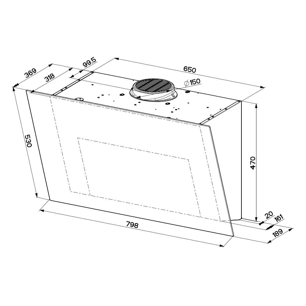Nástěnná digestoř PURE BLACK se vyrábí pouze v provedení s černým sklem a v šířce 80 cm. Odsavač par lze namontovat tak, že odvádí výpary přímo otvorem v zadní části do vzduchového potrubí ve stěně (otočná motorová jednotka).