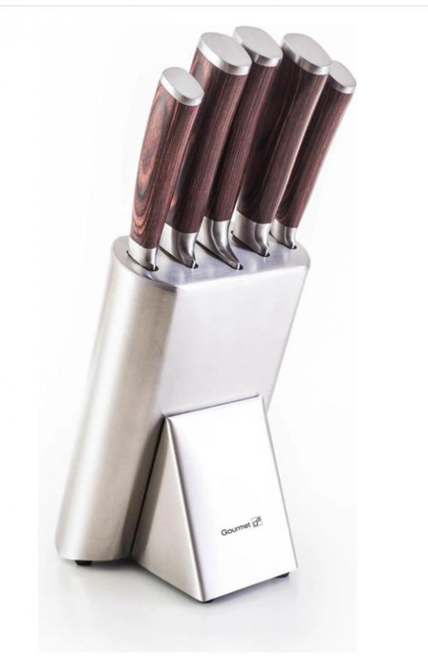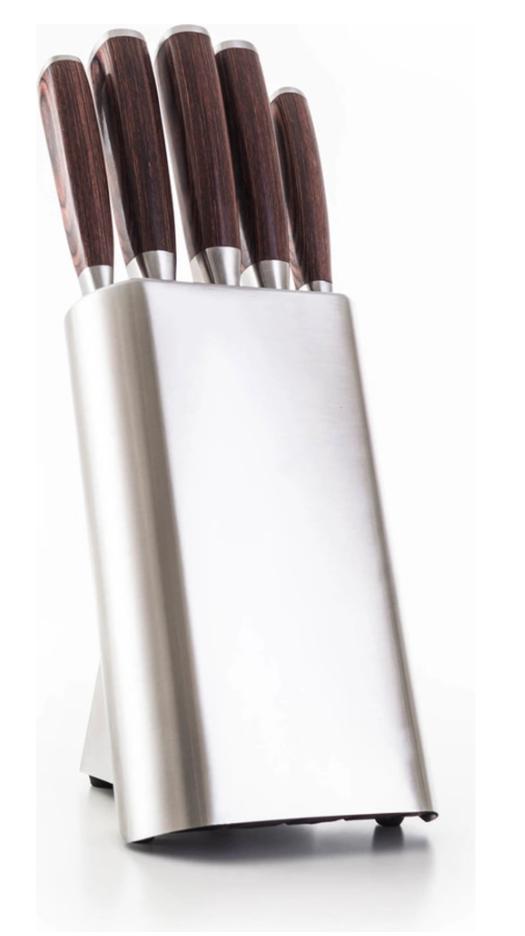 Nevíte kam nože bezpečně uložit? Do stojánku! Součástí sady je designový stojánek ve stříbrném provedení. Ve stojánku má každý z nožů své bezpečné místo.