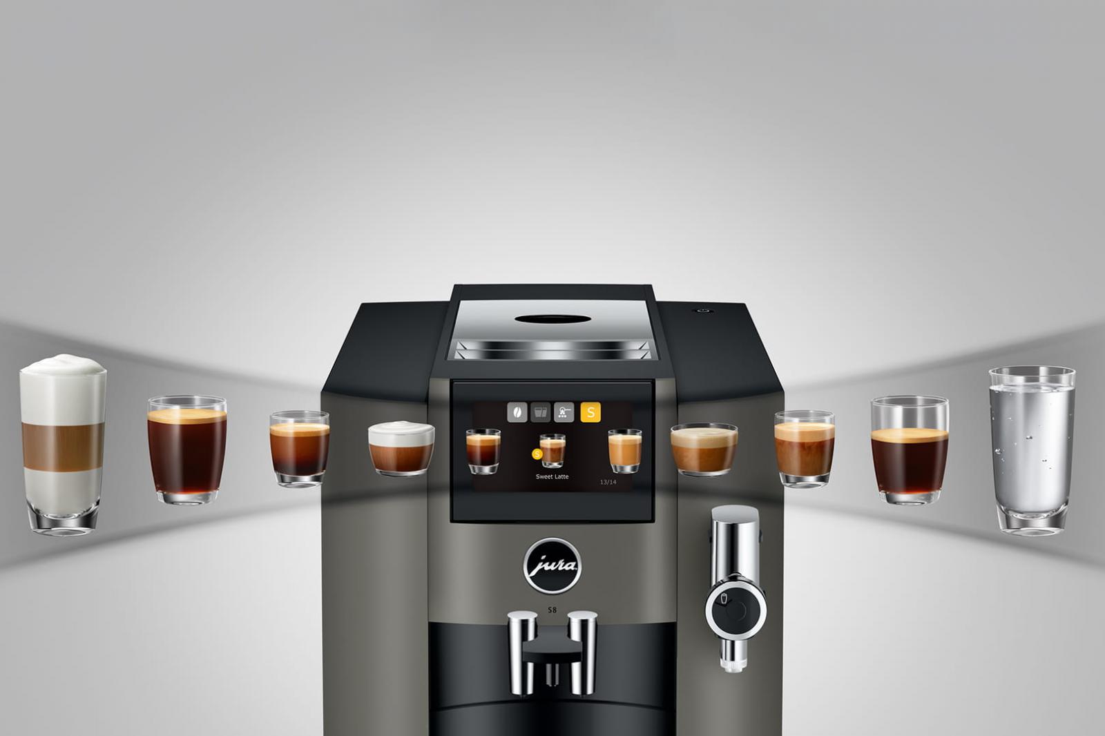 Stylový kávovar S8 potěší milovníky kávy, stejně jako estéty. Díky svému jedinečnému designu, použití vysoce kvalitních materiálů a prvotřídnímu zpracování, je na první pohled výrazem vynikajícího vkusu. Inovativní technologie otevírají nové možnosti pro dokonalou chuť. Pouhým dotykem prstu si připravíte celou řadu kávových specialit vynikající chuti.