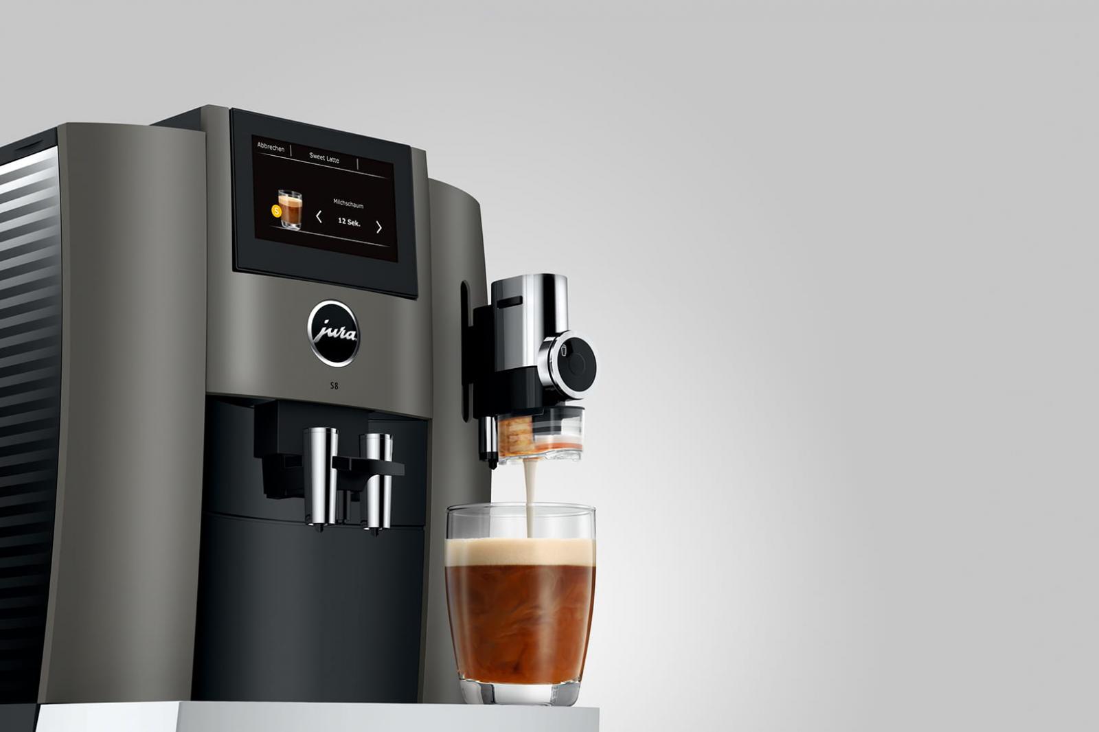 Funkce Sweet Foam ochucuje mléčnou pěnu přímo při přípravě tím, že mléko ohřeje, napění a rovnoměrně ochutí sirupem z dodávaného nástavce na sirup. Výsledkem je jemně slazená mléčná pěna s jemně pórovitou strukturou – pro zcela nový chuťový zážitek. Kávovar S8 dokonce dokáže vykouzlit oblíbené speciality, jako je Sweet Latte, a to jediným stisknutím tlačítka. Za všech okolností mají nápoje dokonalou teplotu díky funkci horkého mléka. Důmyslné čištění mléčných cest jediným stisknutím tlačítka, požitek ze Sweet Foam ještě zdokonaluje.