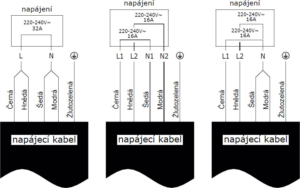 Elektrické připojení: 400 V / 50 Hz / 2 x 16 A