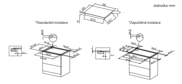 - Rozměr pro instalaci (Šx H): 56,4 x 49,4 cm