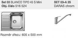 Parametry produktu SET 03-A 25 Tipo 45 S Mini přírodní lesk + Daras chrom SET 03-A 25