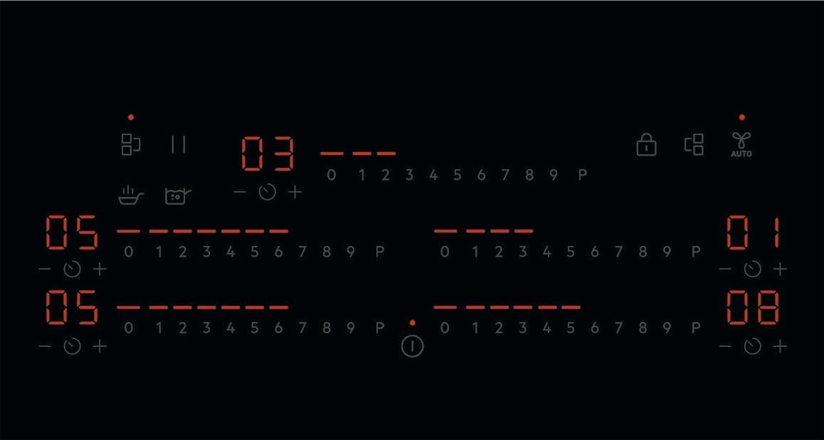 - Kontrolní funkce: 3 krokové využití zbytkového tepla, akustický signál, funkce POWER (Booster) = rychlé ohřátí, dětský zámek, DoubleBridge, Eco časovač (využití zbytkového tepla), flexibilní Power Management, Heat memory, propojen s odsavačem Hob2Hood, Samostatné ovládací zóny, zajištění/odjištění ovládacího panelu, minutka, pauza, detekce hrnců a pánví, SenseCook Boil, SenseCook Fry, vypnutí zvuku