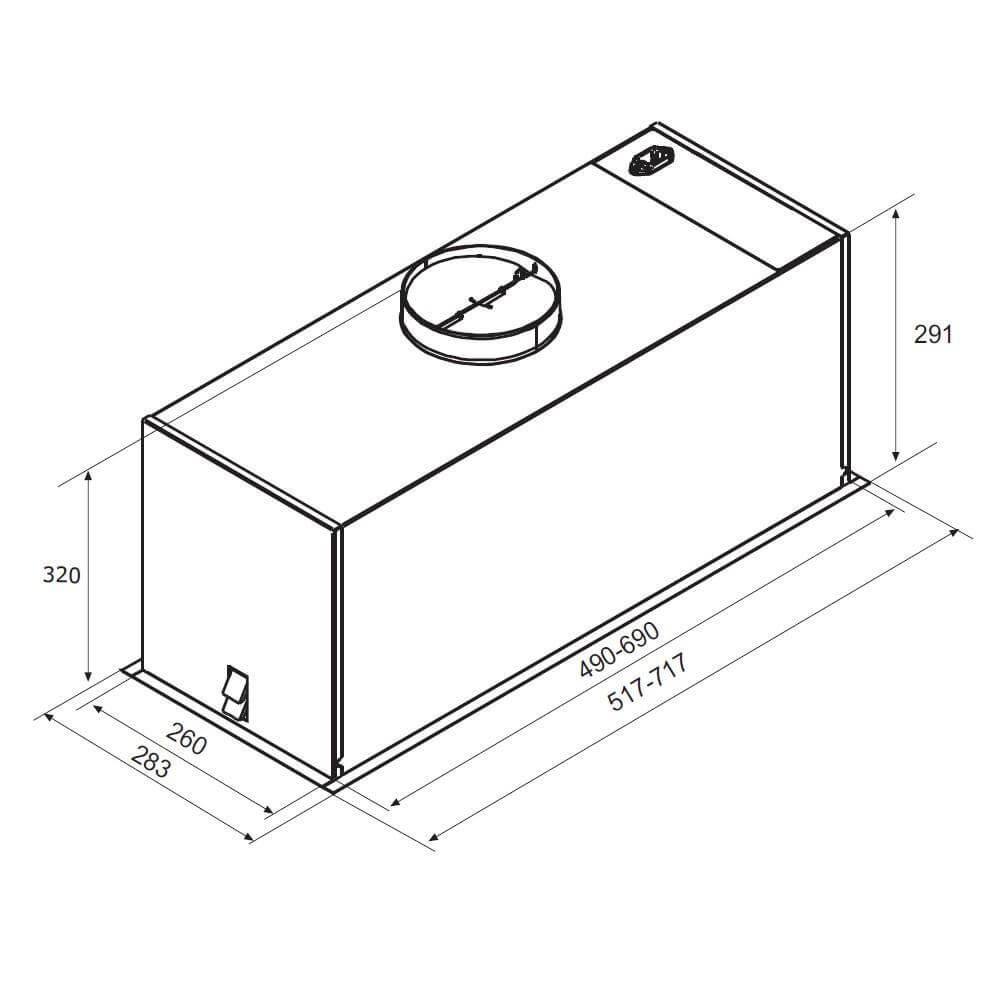 Vestavný odsavač par, Barva: Černá, Energetická třída: A, Šířka: 52 cm, Výkon odsávání: 626 m3/h, Průměr odtahu: 150 mm, Směr odtahu: Horní, Možnost recirkulace i odtahu ven