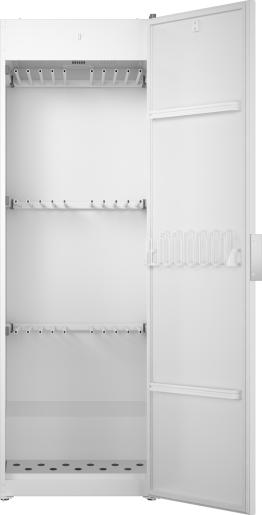 Odvětrávaná sušicí skříň v bílé barvě poskytuje efektivní a šetrné sušení různých druhů prádla, a dokonce i obuvi. Závěsy jsou výsuvné pro snadné nakládání a vykládání, celková délka závěsu je 16 m. Ovládací panel je umístěn na dveřích v ergonomické výšce a můžete si vybrat mezi automatickým nebo manuálním programem.