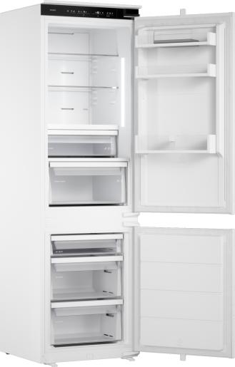 ASKO RBC276SND1, vestavná chladnička s mrazničkou, se snadno ovladatelným dotykovým displejem a Wi-Fi připojením pro pohodlné ovládání prostřednictvím aplikace ConnectLife. Chladnička je vybavena zásuvkami Nordic Fresh, které se hladce pohybují po teleskopických výsuvech a díky automatické regulaci vlhkosti vytvářejí ideální podmínky pro uchování čerstvých potravin. Mraznička je vybavena technologií No Frost, která eliminuje potřebu odmrazování.