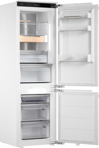ASKO RBC576DNC1, vestavná chladnička s mrazničkou, s barevným dotykovým displejem a Wi-Fi připojením pro pohodlné ovládání prostřednictvím aplikace ConnectLife. Unikátní zásuvky Dura Fresh s individuální regulací teploty a automatickou kontrolou vlhkosti zajišťují ideální podmínky pro uchování čerstvých potravin. Zásuvky v chladničce i mrazničce se hladce pohybují po teleskopických výsuvech a technologie No Frost eliminuje potřebu odmrazování.