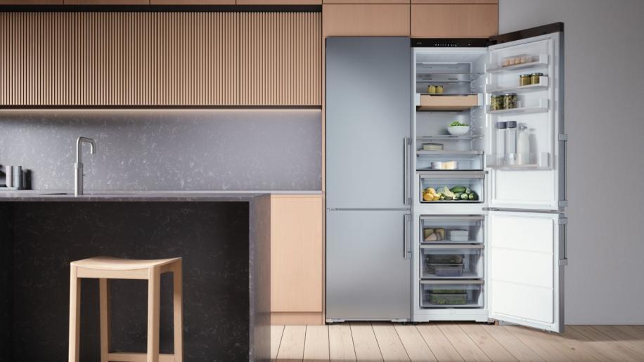 ASKO RFC526RNBS1, volně stojící chladnička s mrazničkou se systémem Slot-in, s barevným dotykovým displejem a Wi-Fi připojením pro pohodlné ovládání prostřednictvím aplikace ConnectLife. Unikátní zásuvky Dura Fresh s individuální regulací teploty a automatickou kontrolou vlhkosti zajišťují ideální podmínky pro uchování čerstvých potravin. Zásuvky v chladničce i mrazničce se hladce pohybují po teleskopických výsuvech a technologie No Frost eliminuje potřebu odmrazování.