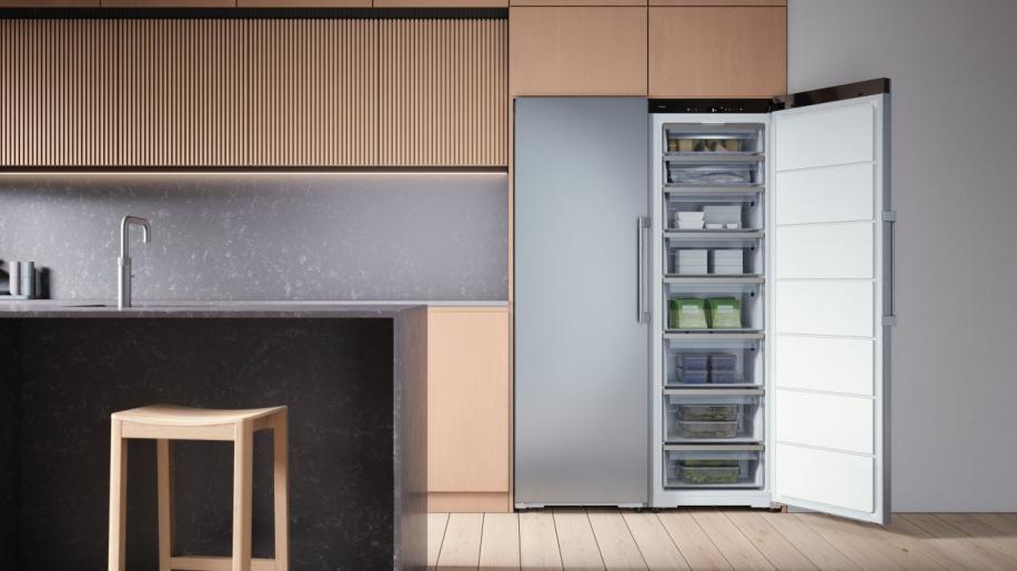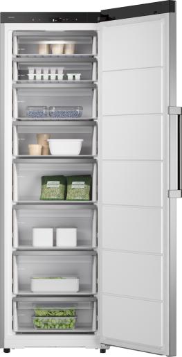 Volně stojící mraznička ASKO RFF586KNCS1 se systémem Slot-in a designem Kitchen Fit, který dokonale ladí s hloubkou kuchyňské linky bez rušivých přesahů. Je vybavena barevným dotykovým displejem a Wi-Fi připojením pro pohodlné ovládání prostřednictvím aplikace ConnectLife. Zásuvky v mrazničce se hladce pohybují po teleskopických výsuvech a technologie No Frost eliminuje potřebu odmrazování.