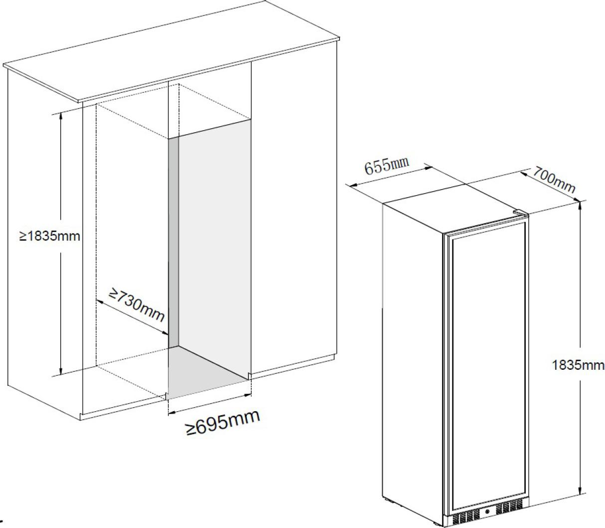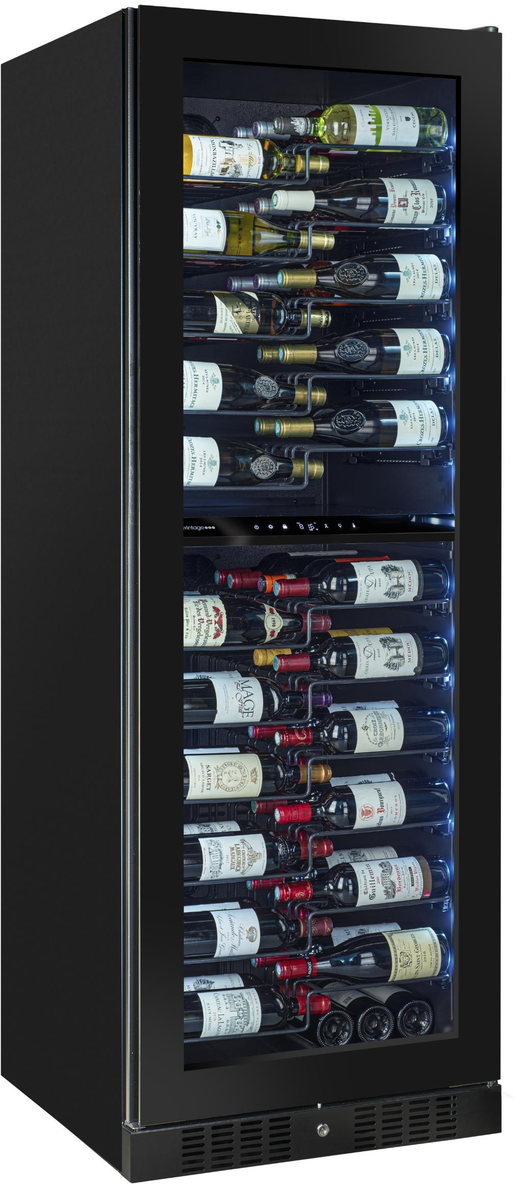 Dvouzónová volně stojící nebo vestavná servírovací vinotéka s kapacitou 131 lahví, horní zóna: 60, spodní zóna: 71; Možnost demontáže spodní ventilační mřížky a jejího nahrazení nábytkovým soklem; Dvou-kompresorové nezávislé chlazení pro každou zónu; Rozsah nastavení teplot: 5-20 °C pro horní zónu a 5-20 °C pro spodní zónu; Černé tělo vinotéky; LED osvětlení po stranách s vypínačem a s možností nastavení barvy a intenzity osvětlení podle potřeby aby odpovídalo atmosféře vaší kuchyně; Vyberte si ze 3 barev: studená bílá, teplá bílá, jantarová a 4 stupňů intenzity: 25%, 50%, 75%, 100%; Uzamykatelné dveře s možností změny směru otevírání; 2 vrstvy tvrzeného šedě tónovaného skla s UV filtrem s nízkou emisivitou; 11 ks výsuvných drátěných polic na kolejničkách pro 75 cl lahve typu Bordeaux, šampaňské nebo burgundské; Zimní režim: udrží víno v požadované teplotě i při nízké okolní teplotě; Antivibrační systém; 2x Filtr s aktivním uhlím; Výškově nastavitelné přední nožky (rozsah až 6,5 cm); Vizuální a zvukové alarmy; Klimatická třída N-ST; Energetická třída F; Roční spotřeba energie 124 kWh; Hlučnost 39 dB; Rozměry (VxŠxH): 183,5 x 65,5 x 70 cm