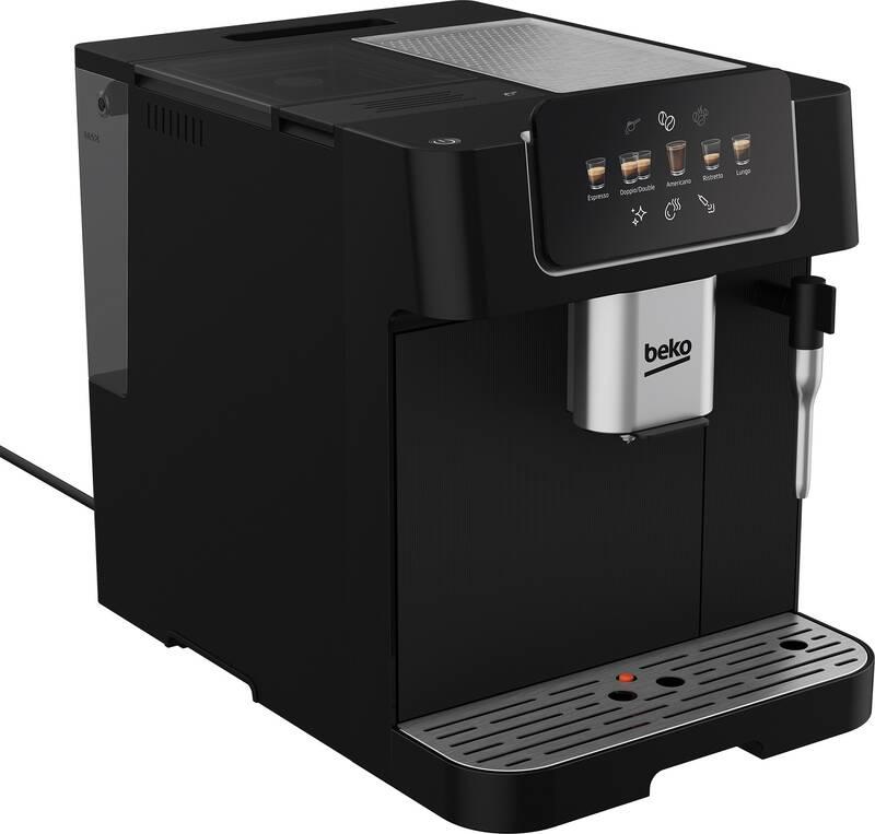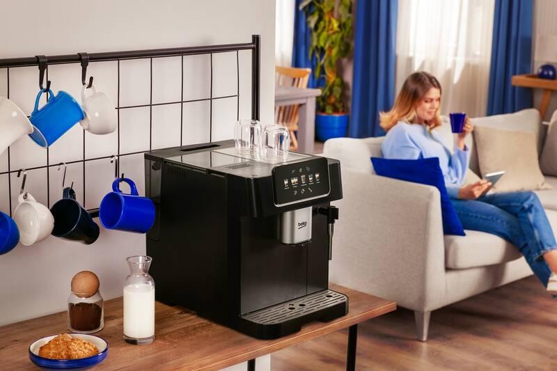 Nechte se unášet vůní čerstvé kávy a dopřejte si šálek výtečného espressa, který si s láskou připravíte v automatickému espressu Beko CEG7302B. Tento kávovar je vybaven ocelovým mlýnkem s 13 úrovněmi nastavení, abyste si přizpůsobili mletou kávu vašim preferencím a získali perfektní aroma a chuť. Zásobník s kapacitou 250 g zrnkové kávy poskytne dostatečnou zásobu pro dlouhé kávové chvíle bez častého doplňování. Samozřejmostí je parní tryska pro pěnění mléka – ideální pro kávové speciality s mlékem jako je cappuccino nebo latte. Espresso Beko zdobí moderní černý design s přehledným obrázkovým displejem, který vás provede jednotlivými funkcemi a usnadní obsluhu. Díky výškově nastavitelnému výstupu si snadno upravíte výšku výstupu kávy podle vašeho hrnku, tzn. od malých espressových šálků až po hrnky vysoké 14 cm.