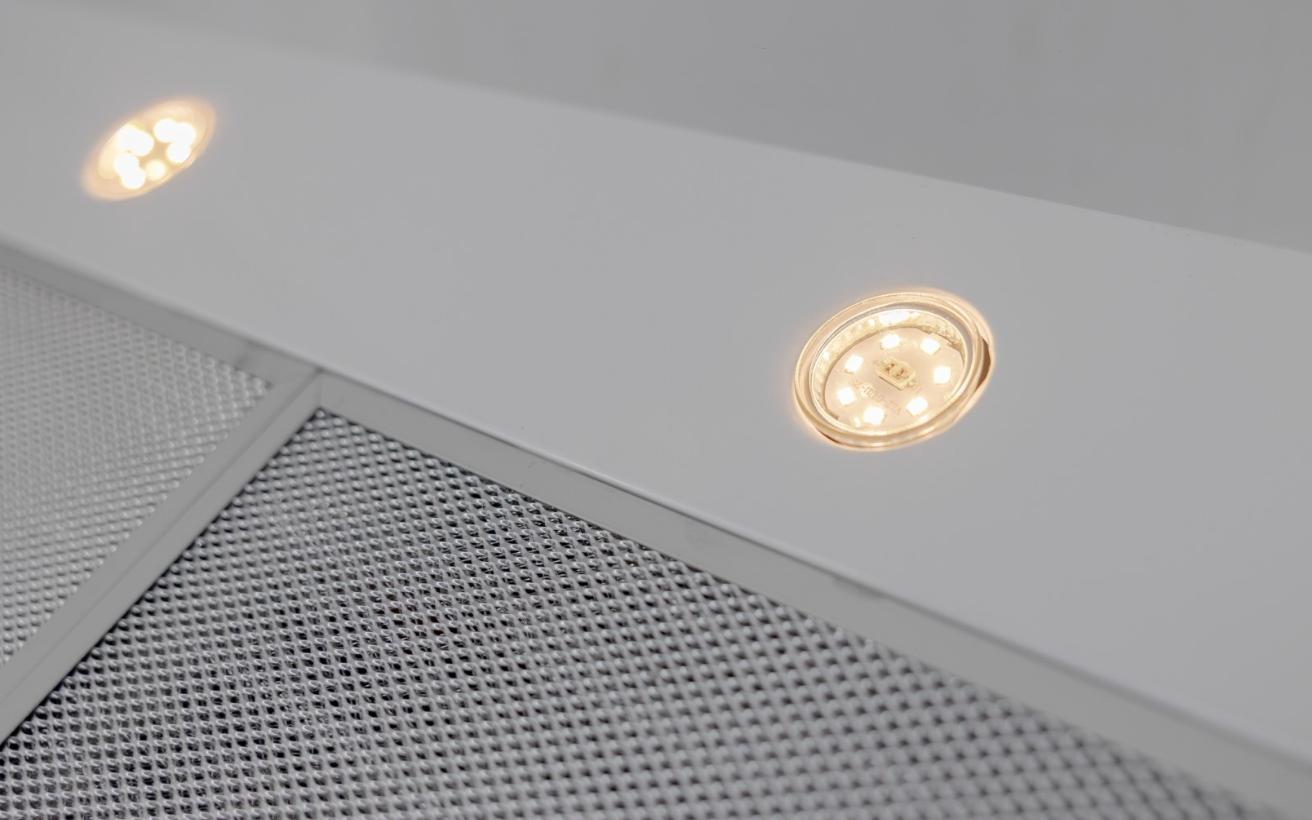 Podskříňková digestoř, šíře 60 cm, bílá, max. výkon 286 m3/h (15 Pa), hlučnost Lw 55 – 74 dB(A), 3 rychlosti, elektronické tlačítkové ovládání, kovové sendvičové tukové filtry, které lze mýt v myčce, možnost práce v odtahovém i recirkulačním režimu, výstupní průměr 120 mm, Výbava: ovládání gestem - digestoř lze vypnout bezkontaktně pohybem ruky (přiblížením k čidlu), dalším pohybem ji lze opět zapnout (pamatuje si poslední nastavení před vypnutím gestem), úsporné LED osvětlení 2 × 2 W, zdarma zpětná klapka