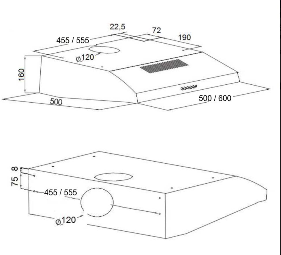 | Min.výška nad elektrickou deskou | 500 mm |