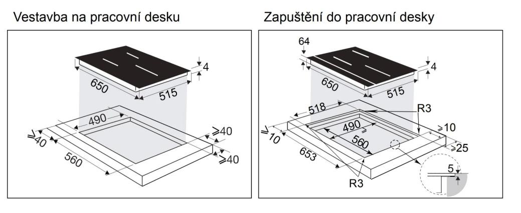 Možnost zapuštění varné desky do pracovní desky:Ano