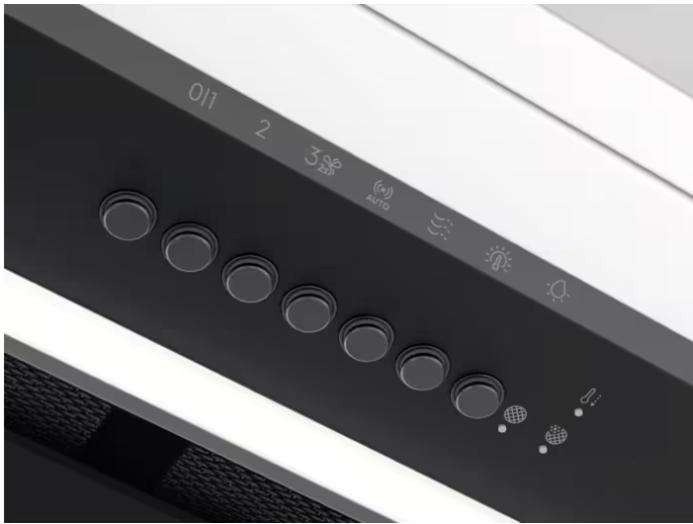 - Možnost nastavení recirkulace vzduchu: Recirkulace vzduchu je nastavení odsavače, kdy není vzduch odváděn mimo místnost. Vzduch je zbavován mastných par, případně pachu a vrací se zpět do místnosti. K odstraňování pachu je třeba instalovat uhlíkový filtr, který není součástí balení.