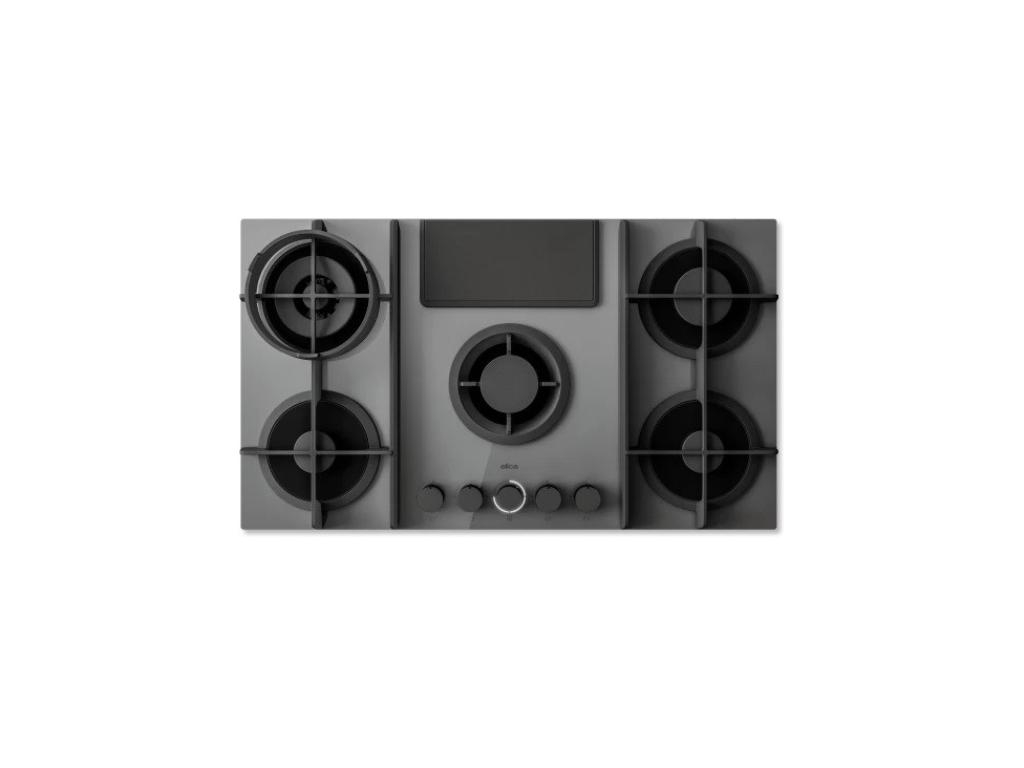 ELICA NIKOLATESLA FLAME EVO plynová varná deska s integrovaným odsavačem par od Elica navržený designérem společnosti ELICA FABRIZIO CRISA představená na veletrhu EUROCUCINA 2024. ELICA NIKOLATESLA FLAME EVO je vyroben z černého bezpečnostního s..