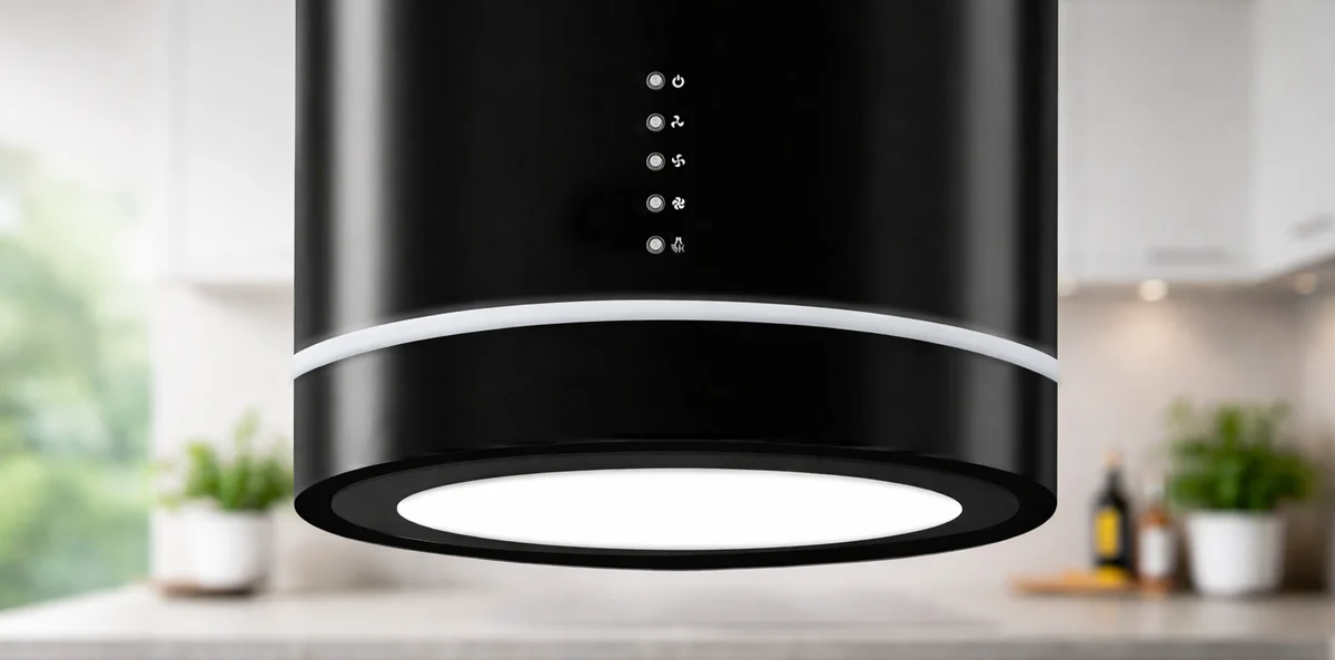Minimalistický ostrůvkový odsavač par o průměru 38 cm v černém kovovém provedení je navržen pro moderní kuchyně, kde se potkává vysoký výkon s vytříbeným designem. Tichý invertorový motor zajišťuje efektivní odsávání, nízkou hlučnost a dlouhou životnost. Promyšlené osvětlení zároveň umožňuje vytvořit přesně takovou atmosféru, jakou právě potřebujete – od teplého, útulného světla až po chladné pracovní osvětlení.