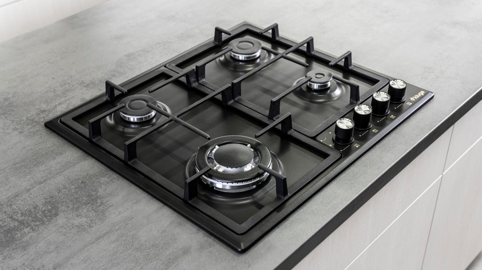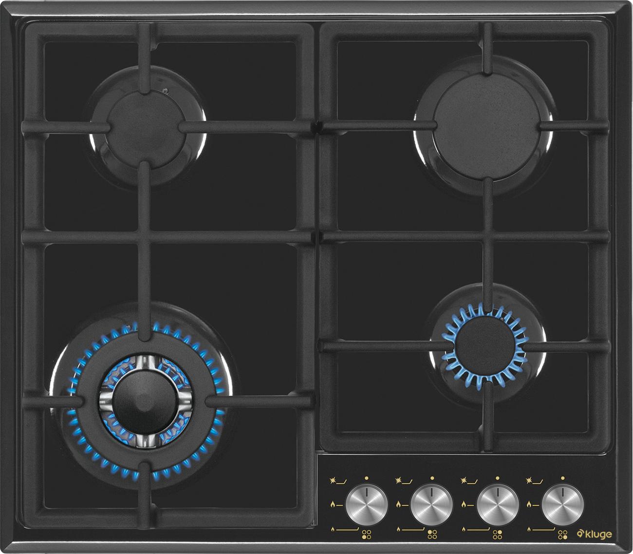 Plynová varná deska; šířka 60 cm; povrch z matného černě lakovaného nerezu; otočné nerezové knoflíky na čelní straně; 4 hořáky: pravý a levý zadní 1,70 kW (Ø 75 mm), pravý přední 0,95 kW (Ø 55 mm), levý přední (WOK) 3,5 KW (Ø 131 mm); celkový nominální výkon plynu 9,05 kW; automatické zapalování hořáků v ovládacích knoflících; funkce Gas Stop; masivní litinové rošty; provoz na zemní plyn nebo PB; rozměry (V x Š x H): 108.5 x 590 x 520 mm