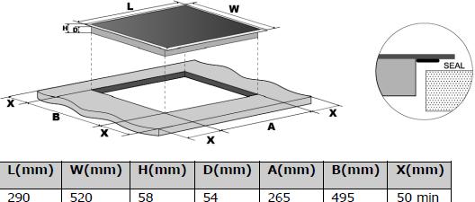 Rozměry otvoru pro vestavbu (V x Š x H): 26,5 x 49,5