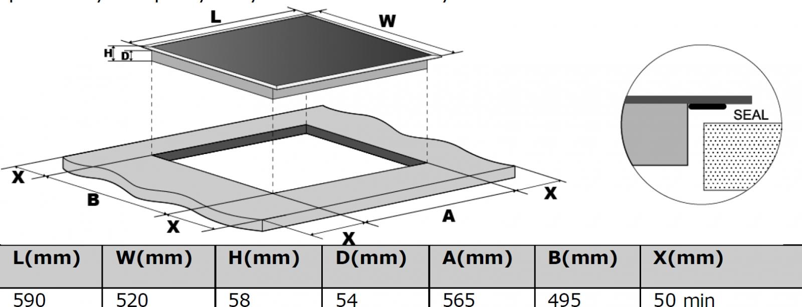 Rozměry otvoru pro vestavbu (V x Š x H): 56,5 x 49,5