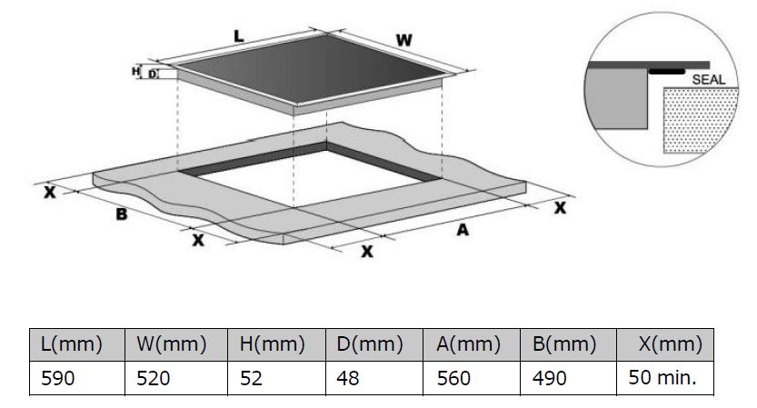 Rozměry otvoru pro vestavbu (V x Š x H): 56 x 49