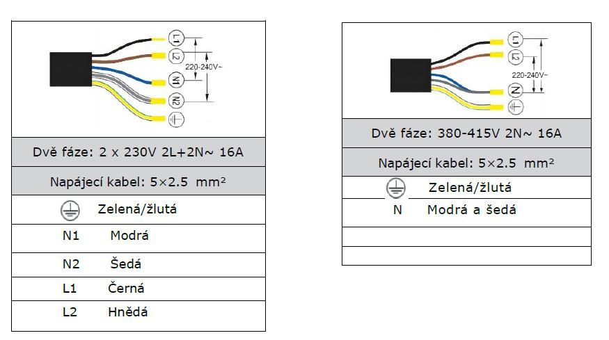 Elektrické připojení: 400 V / 50 Hz / 2 x 16 A