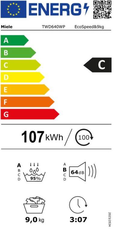 Miele TWD640WP EcoSpeed&9kg je kondenzační sušička s tepelným čerpadlem a kapacitou 9 kg, vhodná pro běžné i větší domácnosti. Spadá do energetické třídy C, přičemž využívá moderní technologie pro úspornější provoz i kratší dobu sušení.