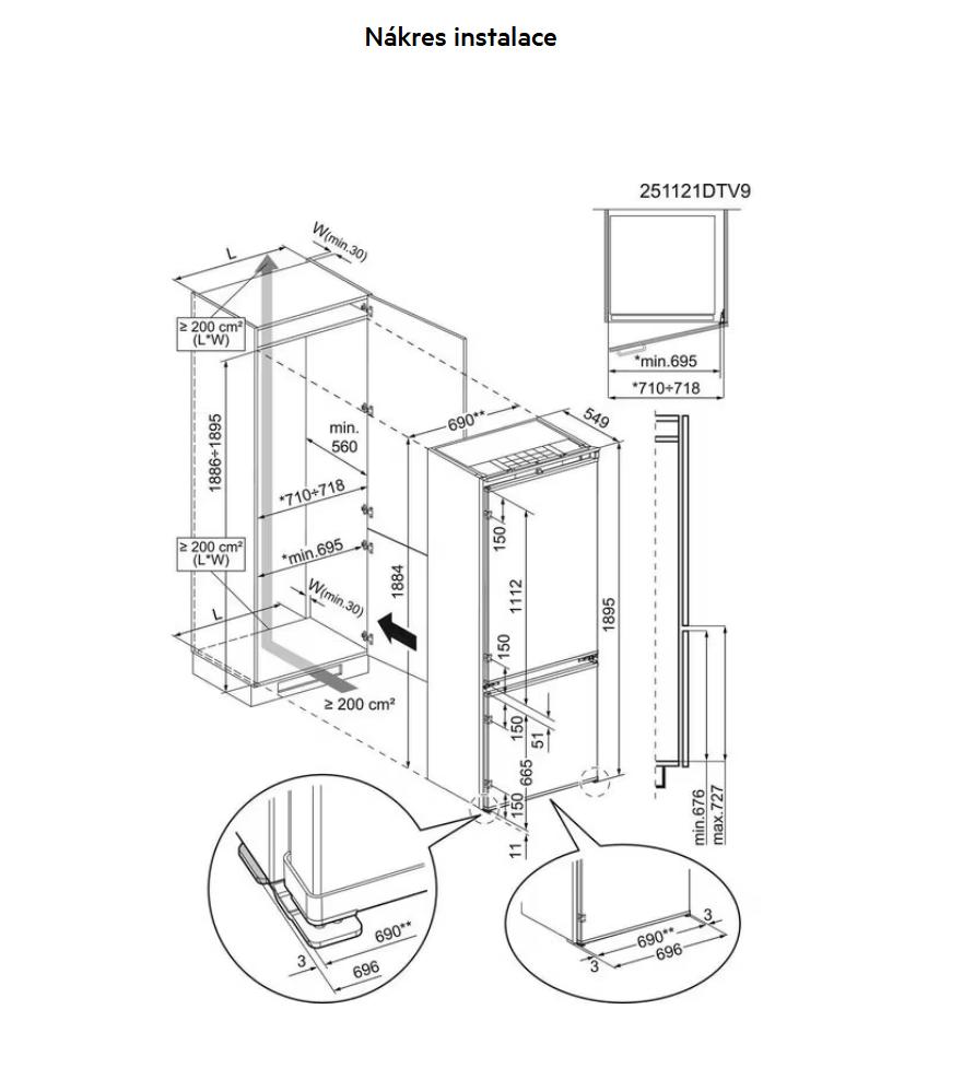 - Vestavné rozměry (mm): 1894 x 710 x 560