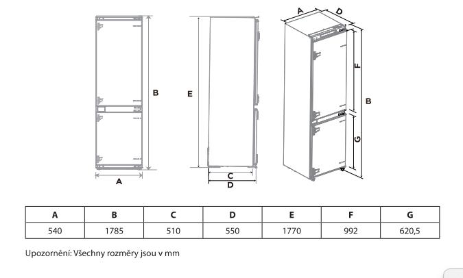 Rozměry pro vestavbu : 177,3 x 56,4 x 57 cm