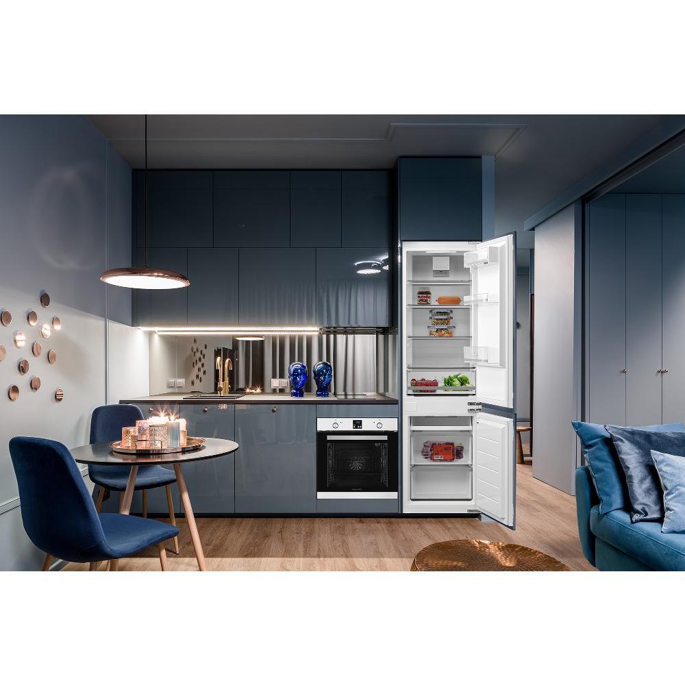 Vestavná kombinovaná chladnička Philco PCNI 1773 SEBI v energetické třídě E s Metal-Tech Cooling a beznámrazovým systémem NoFrost zajistí, abyste chladničku nemuseli odmrazovat. Nabízí dostatečný prostor pro skladování potravin i nápojů.