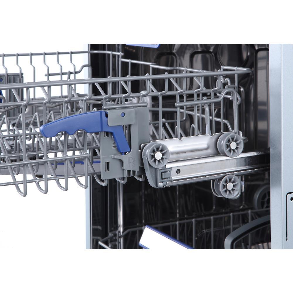 Nerezový interiér nabídne výsuvný koš na příbory a možnost nastavení výšky středního koše i při plném zatížení. Antibakteriální filtr dbá na hygienickou čistotu myčky a AquaStop chrání vaši domácnost před poškozením vodou.