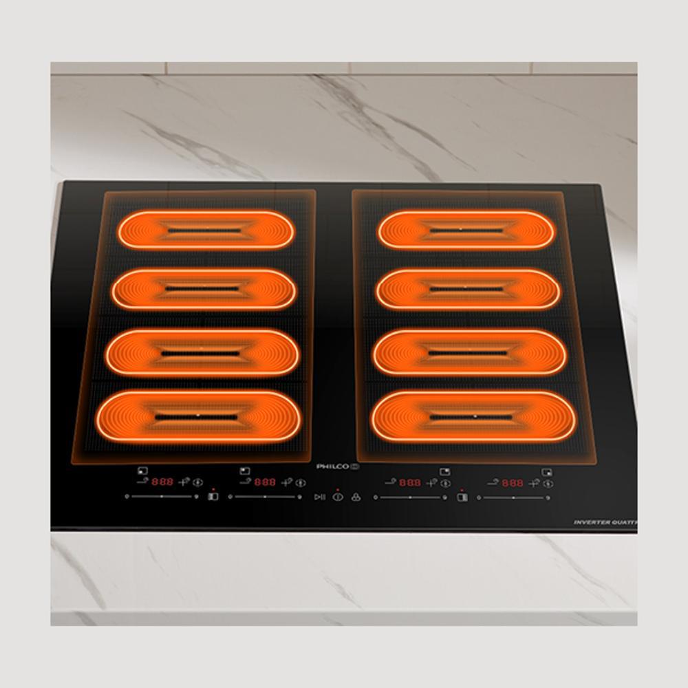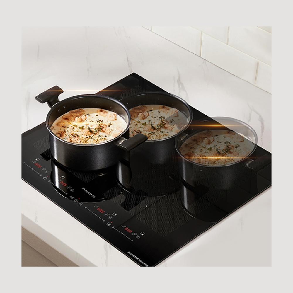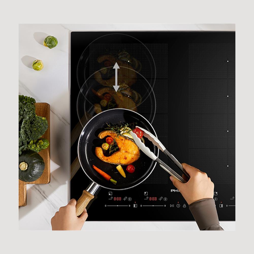 Indukční varná deska Philco PHD 6420 HPSB šetří čas, zjednodušuje každodenní vaření a poskytuje naprostou volnost při práci s více pokrmy zároveň. Díky funkci jako PowerTransfer s automatickým přenosem nastavení mezi zónami nebo DynamicZone, která se přizpůsobí poloze nádoby, se z vaření stává intuitivní zážitek.