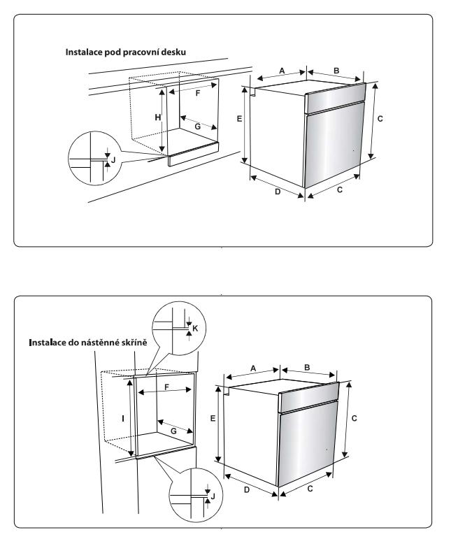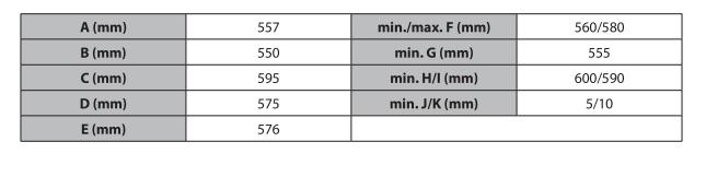 Rozměry pro vestavbu : 59 x 56 x 55,5 cm