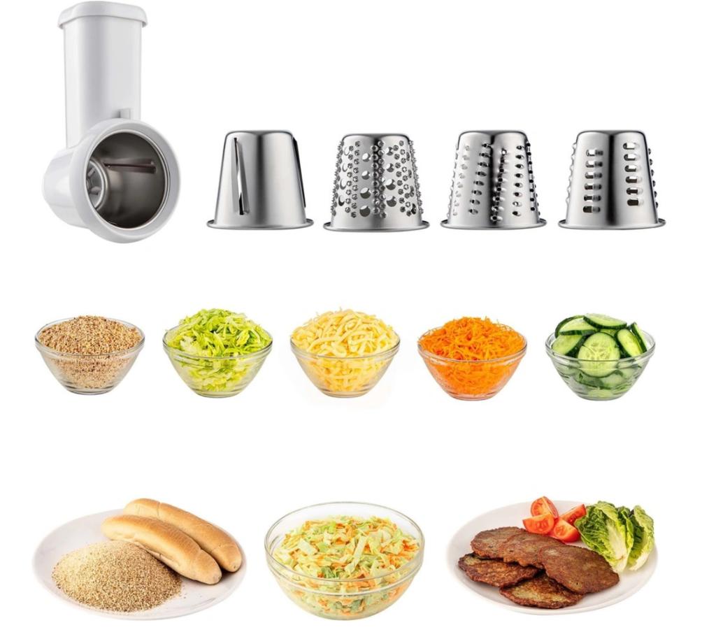 - Kráječ či struhadlo s čtyřmi výměnnými nástavci.