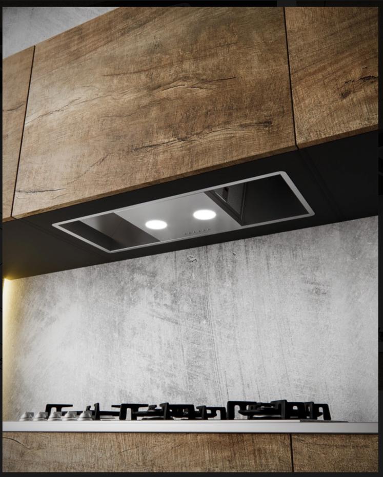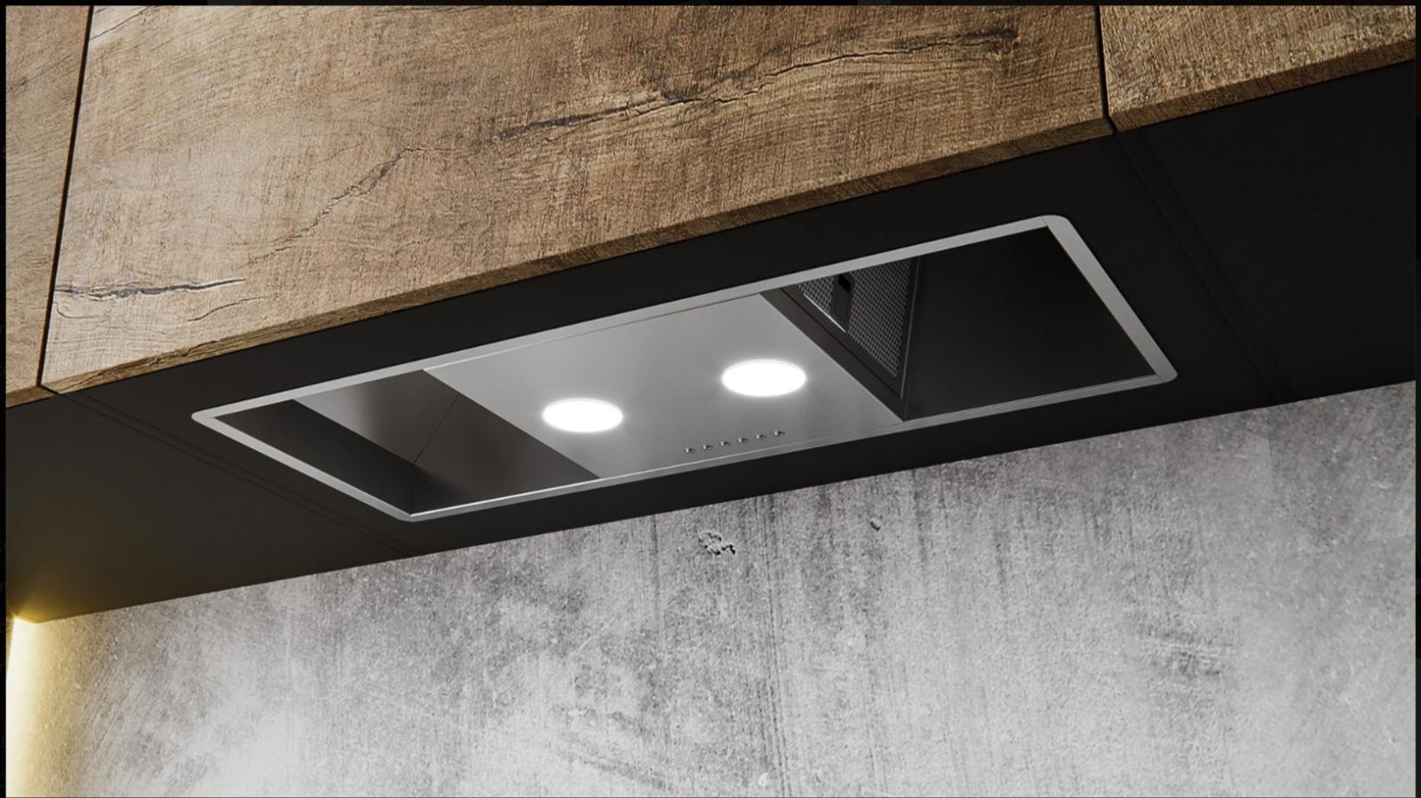 Vestavná digestoř SM 900 je ideálním řešením pro moderní kuchyňské prostory, kde se klade důraz na čistý design a efektivní odsávání. Uprostřed sací zóny je umístěno LED osvětlení, které dokonale osvítí pracovní plochu. Silný motor odvádí výpary bočními otvory, a díky volbě režimu odtahu nebo recirkulace umožňuje flexibilní instalaci. Design přitom zůstává nenápadný – digestoř je skrytá ve skříňce a nezasahuje do prostoru.