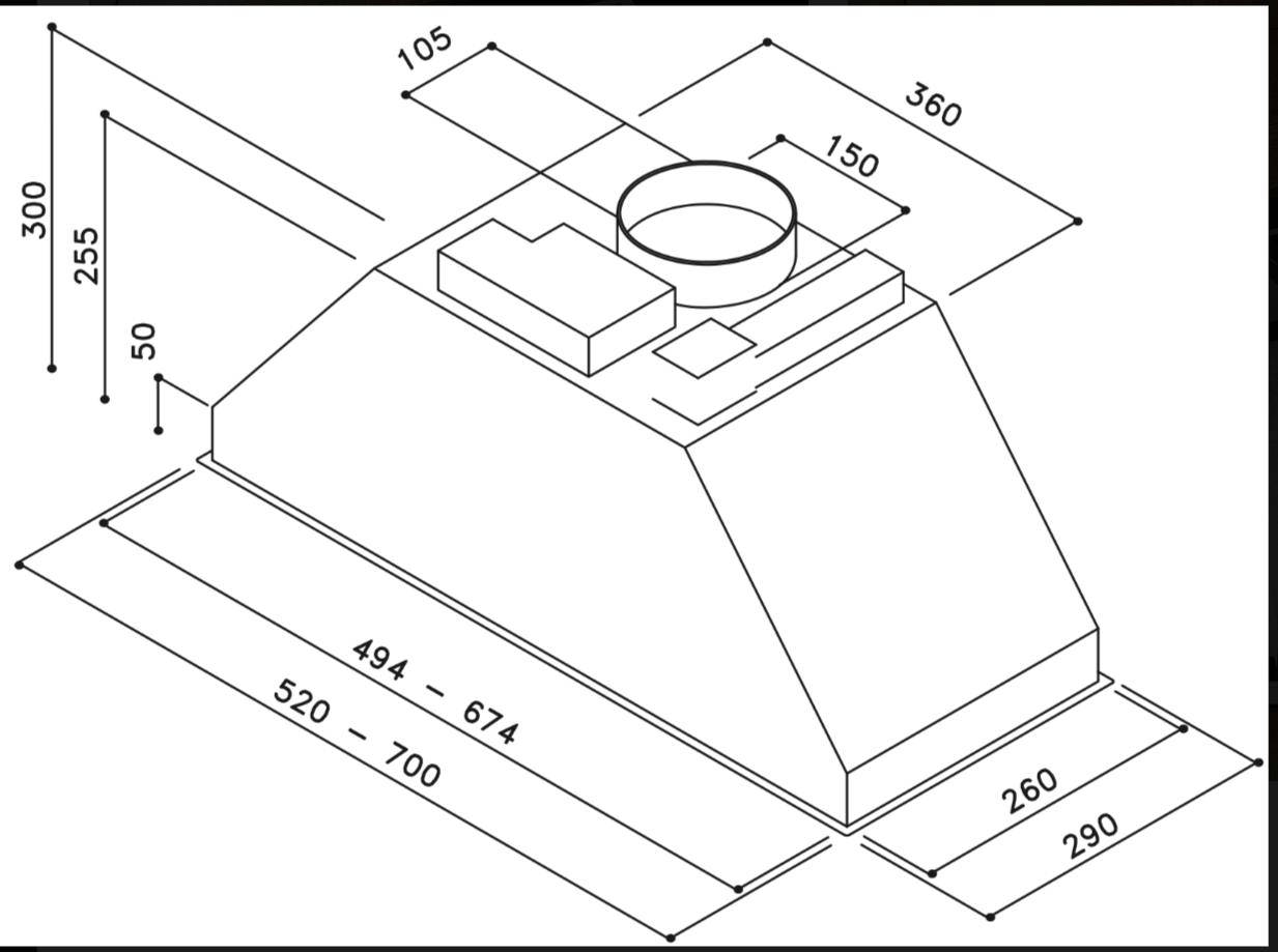 Doporučená výška nad varnou deskou: min. 50–65 cm